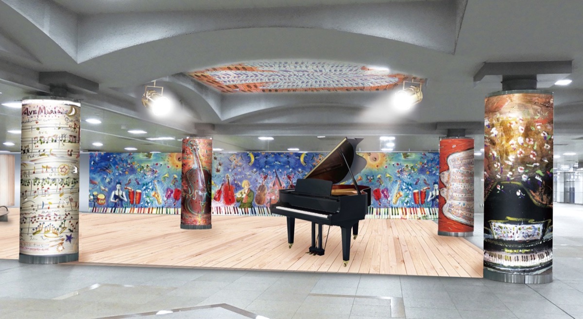 今回のプロジェクト最大の目玉は、湘南台在住の画家・廣田雷風さんがデザインする巨大壁画。廣田さんは、これまでホテルや医療施設などの壁画を多数手掛け、日本楽器製造(現ヤマハ楽器)の嘱託画家としても活動。同会は「地元愛も深く、音楽と美術を融合させ、誰もがわくわくする湘南台を彩るのにふさわしい」と期待する。