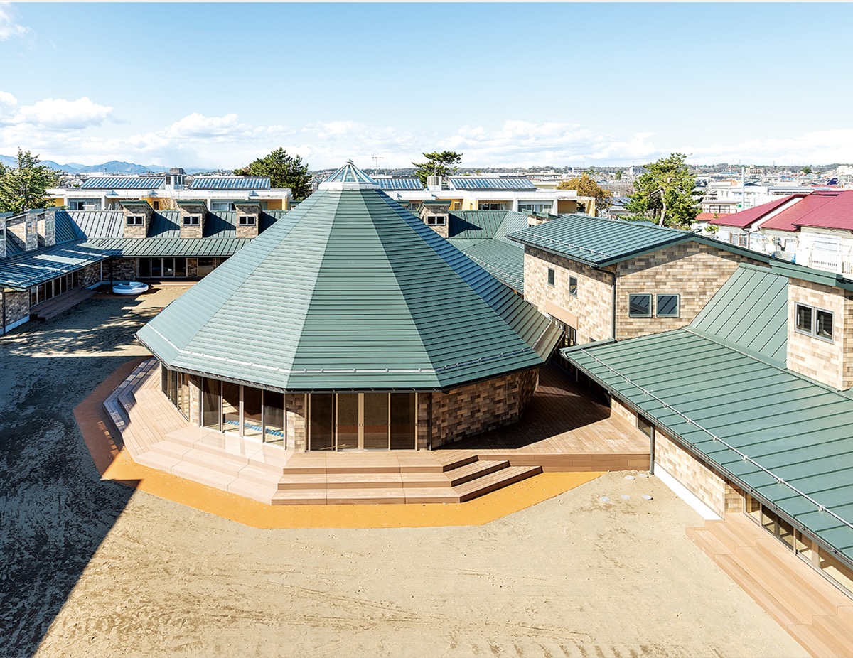 新園舎は延床面積1650平方メートルの木造建築で、(株)洋建築企画が設計・管理、大勝建設(株)が施工を担当、ナイスグループが構造設計や積算、木材調達などを行った。柱や土台は神奈川県産の木材を使用するなど木造へのこだわりと、食育を重視する同園の保育方針から厨房の充実を図ったという。