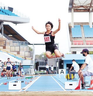 「神奈川県中学校総合体育大会」の陸上が10月3日、川崎市等々力競技場で開催され、北陽中3年の中村咲良さんが走幅跳で優勝した。新型コロナの影響で部活動が中断したり、春から夏にかけての大会が中止となったりした中、陸上に対してまっすぐ向き合ってきた中村さんが、初めて神奈川の頂点に辿り着いた。