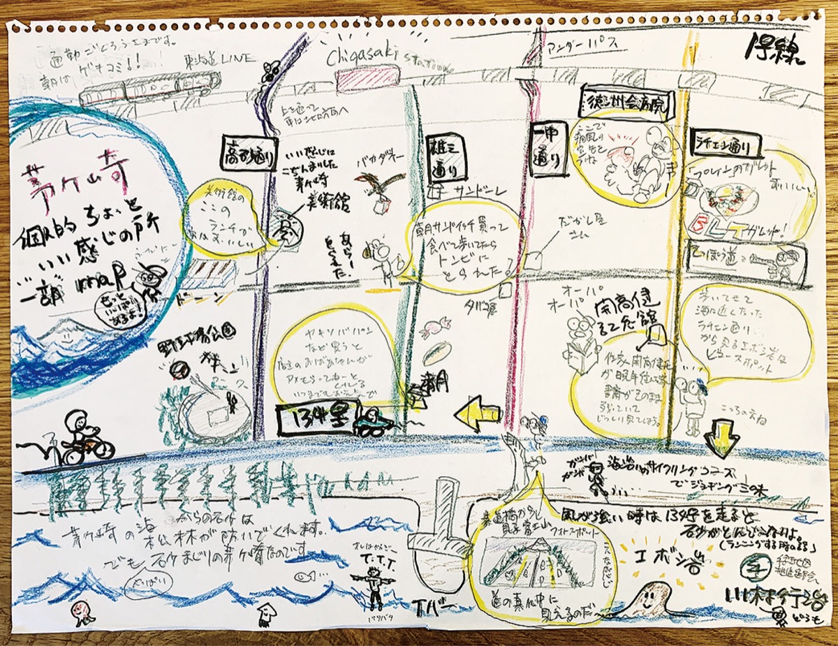 老若男女、どんな地域、国でも同じように楽しめる手書き地図。川村さんは「これからも我々らしく、ワイワイガヤガヤ続けていきたい。茅ヶ崎でワークショップもやれたらうれしいですね」と微笑んだ。