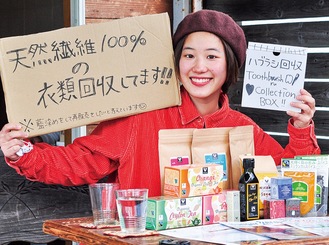 また、使い古しの歯ブラシをはじめ、綿・絹など天然繊維100%の衣類の回収も。歯ブラシは、1本2円として飢餓や貧困に苦しむ人々に寄付されるほか、衣類は後日、茅ヶ崎産の藍染めのリメイク品として再販される。会場BGMは、再生可能エネルギーによってレコードを再生する。