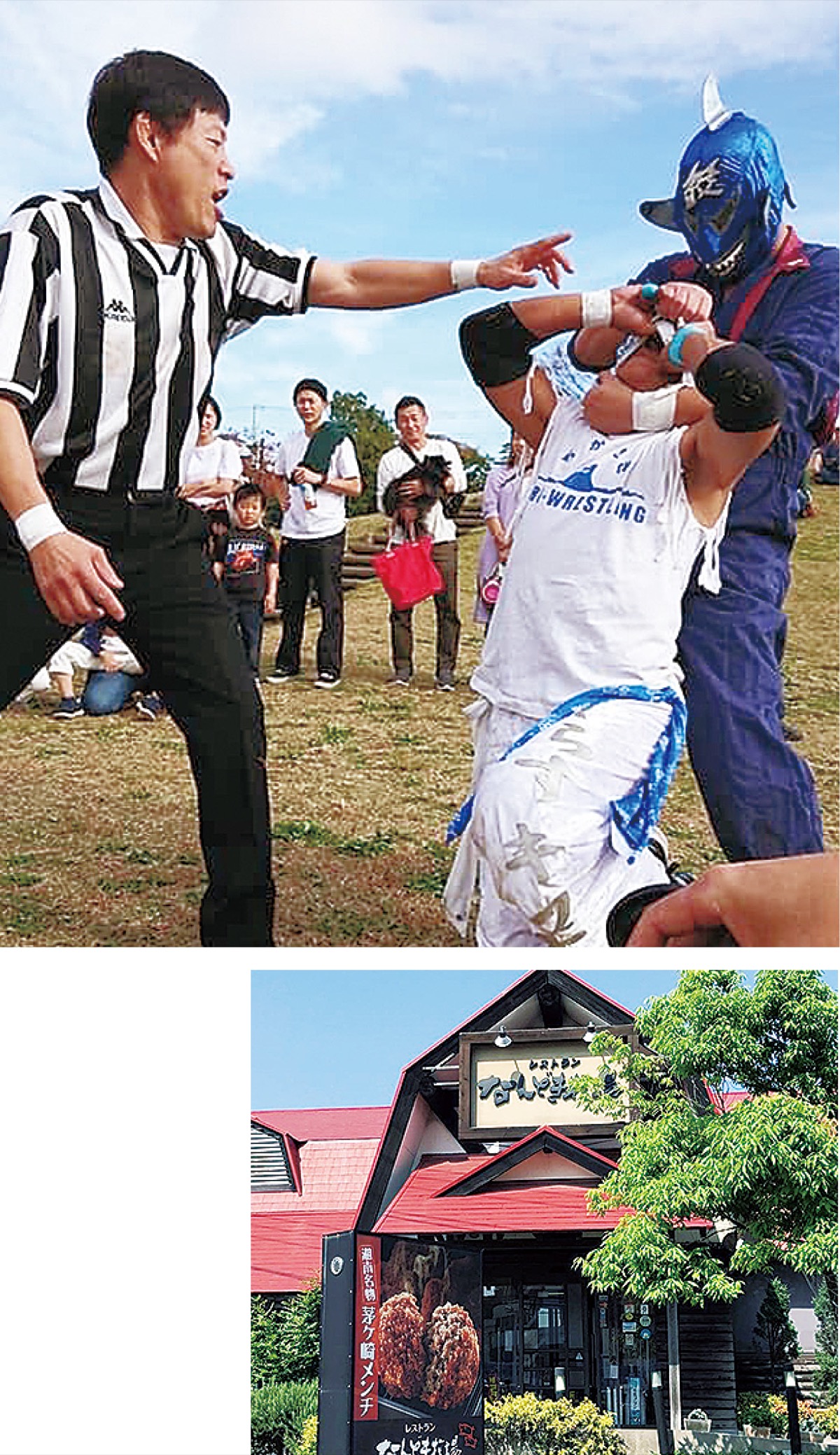 レストランなんどき牧場の創業50周年を記念したイベント「コロナ禍でも茅ヶ崎で思いっきり楽しむ!『なんどき牧場』&『ちがさきプロレス』地域密着エンタメ初タッグ!」が11月15日(日)、同レストラン第2駐車場で開催される。午後2時から5時まで。マットプロレスの時間は3時30分頃を予定。観戦無料。