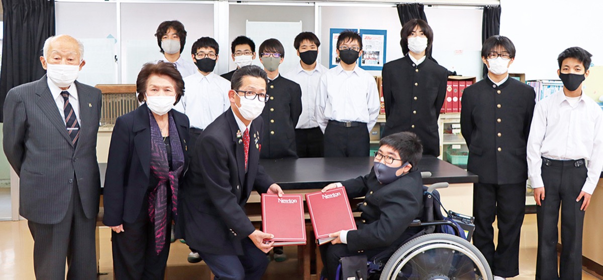 奉仕団体の茅ヶ崎グリーンライオンズクラブ(LC)は12月10日、メンバーが梅田中学校科学部を訪れ、科学雑誌「Newton(ニュートン)」を寄贈した。