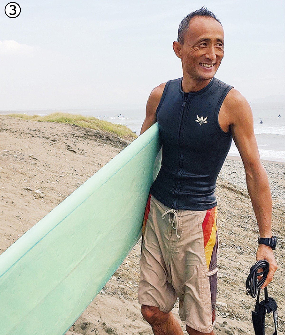 サーフィン歴30年の川廷さんにとって、波乗りの時間もかけがえのないひと時だ。「真夏のコンクリートジャングルで働いている時や、『今日は波が良い』という日でも、朝一でサーフィンさえしていれば、自分の中でのメリハリができて仕事に集中できるんです」