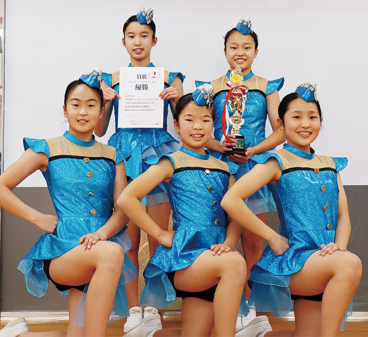 中学生1人、小学生4人のメンバー構成で中高生一般スペシャル部門を勝ち抜き、リーダーの福地璃子さん(中2)は「優勝はびっくり。久しぶりに大会に出られたのもうれしかった」と喜びを噛みしめた。
