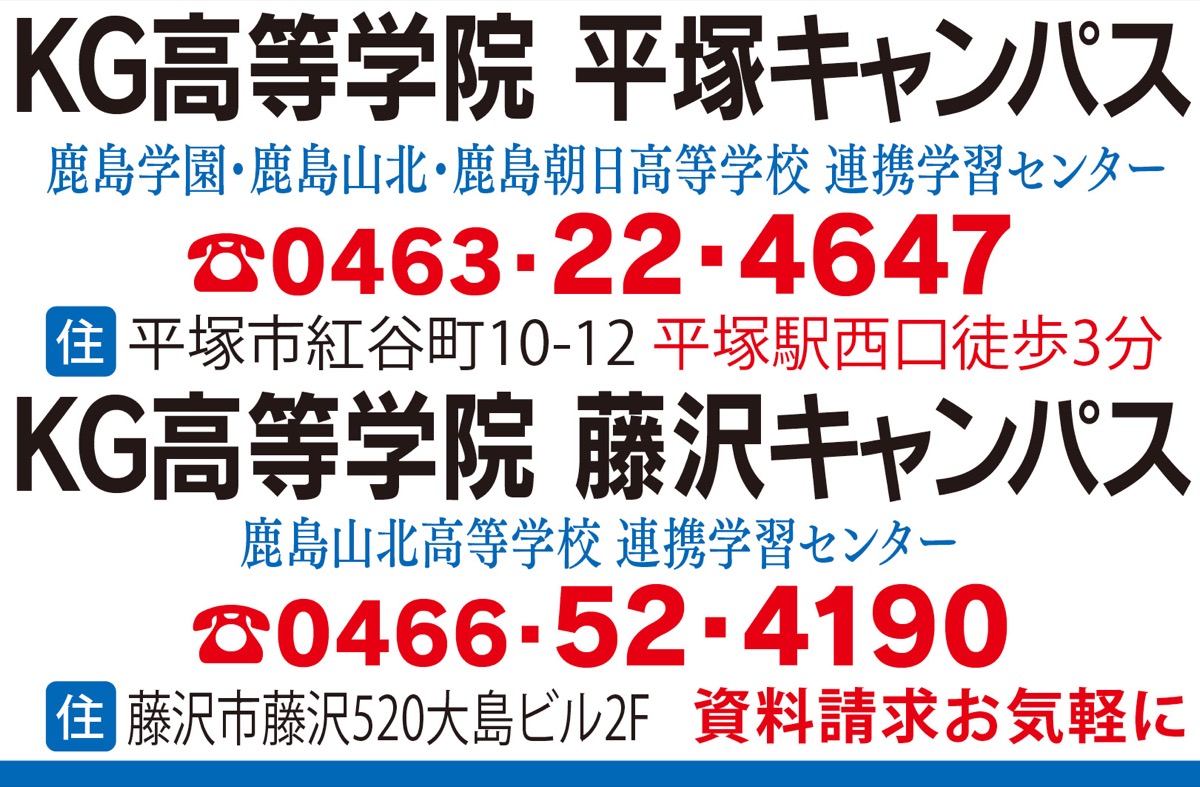「鹿島学園高等学校」連携サポート校の平塚キャンパスと、「鹿島山北高等学校」連携サポート校の藤沢キャンパスが4月からの新入生、転入生を募集している。