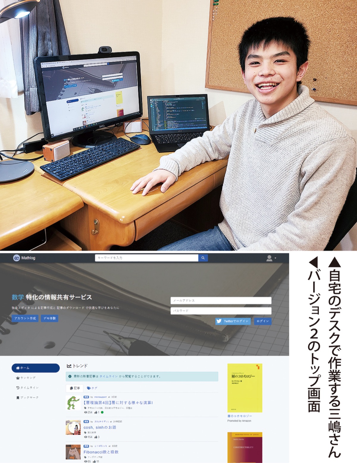 2021年成人のつどい実行委員長を務めた三嶋隆史さん(20・みずき)が手がける数学論文・記事共有アプリ「M(マ)athlog(スログ)」のバージョン2が1月1日に公開され、数学研究の論壇で注目を集めている。