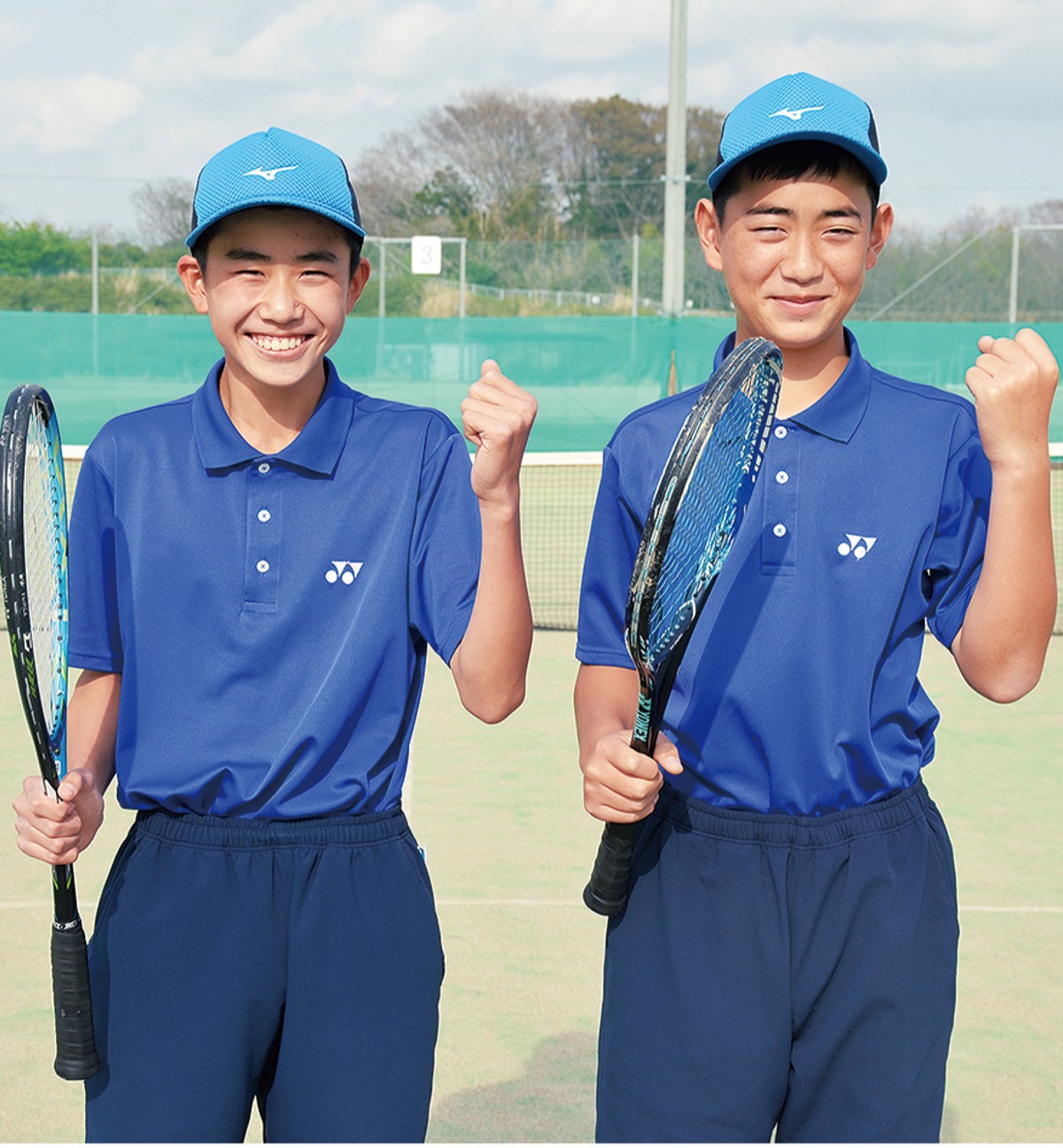 松田君は「まさか全国に行けるとは思わなかった」と話し、淵野君は「幼稚園からテニスを始めたが、自分たちの力で全国出場を決められてうれしかった」と語った。