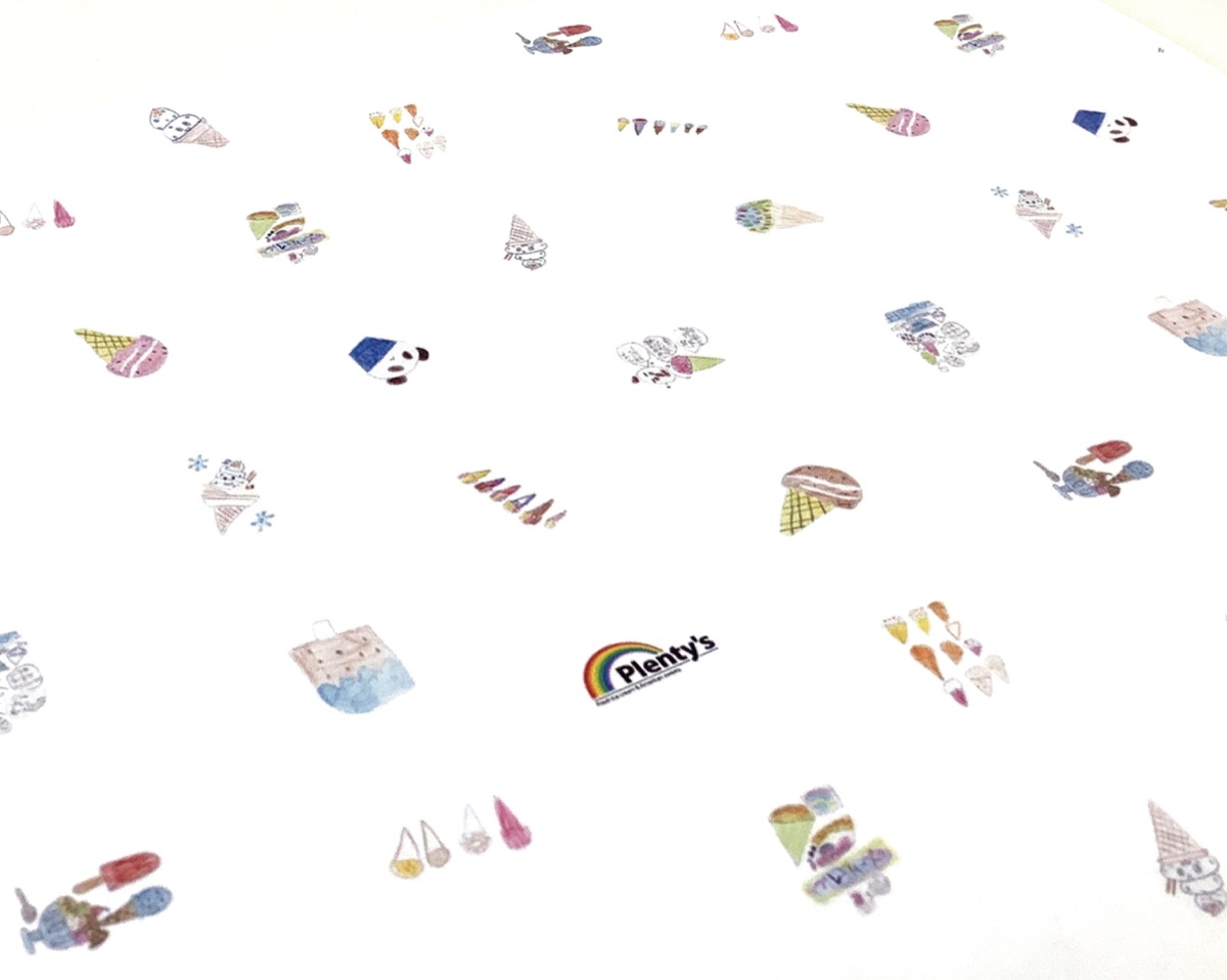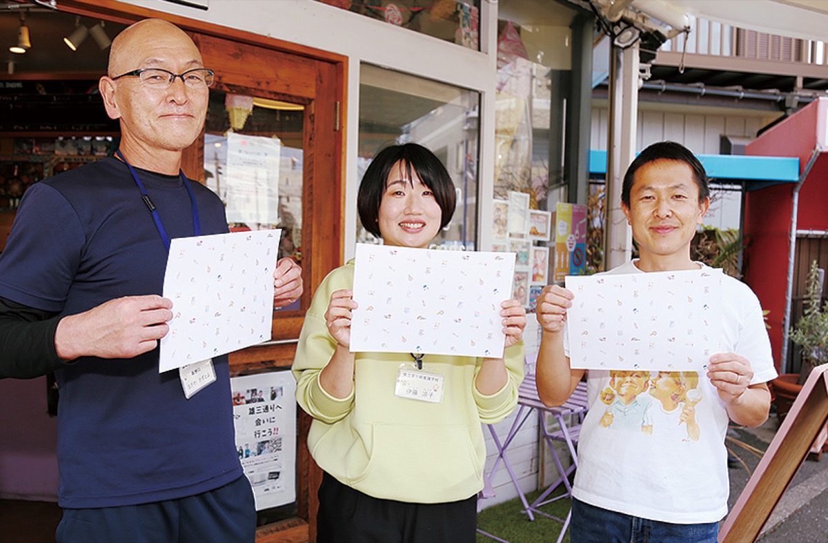 茅ケ崎養護学校(西久保)を今春卒業した生徒らが描いたアイスクリームの絵が、アイス店・プレンティーズ(東海岸北)の商品包装紙として4月に完成した。