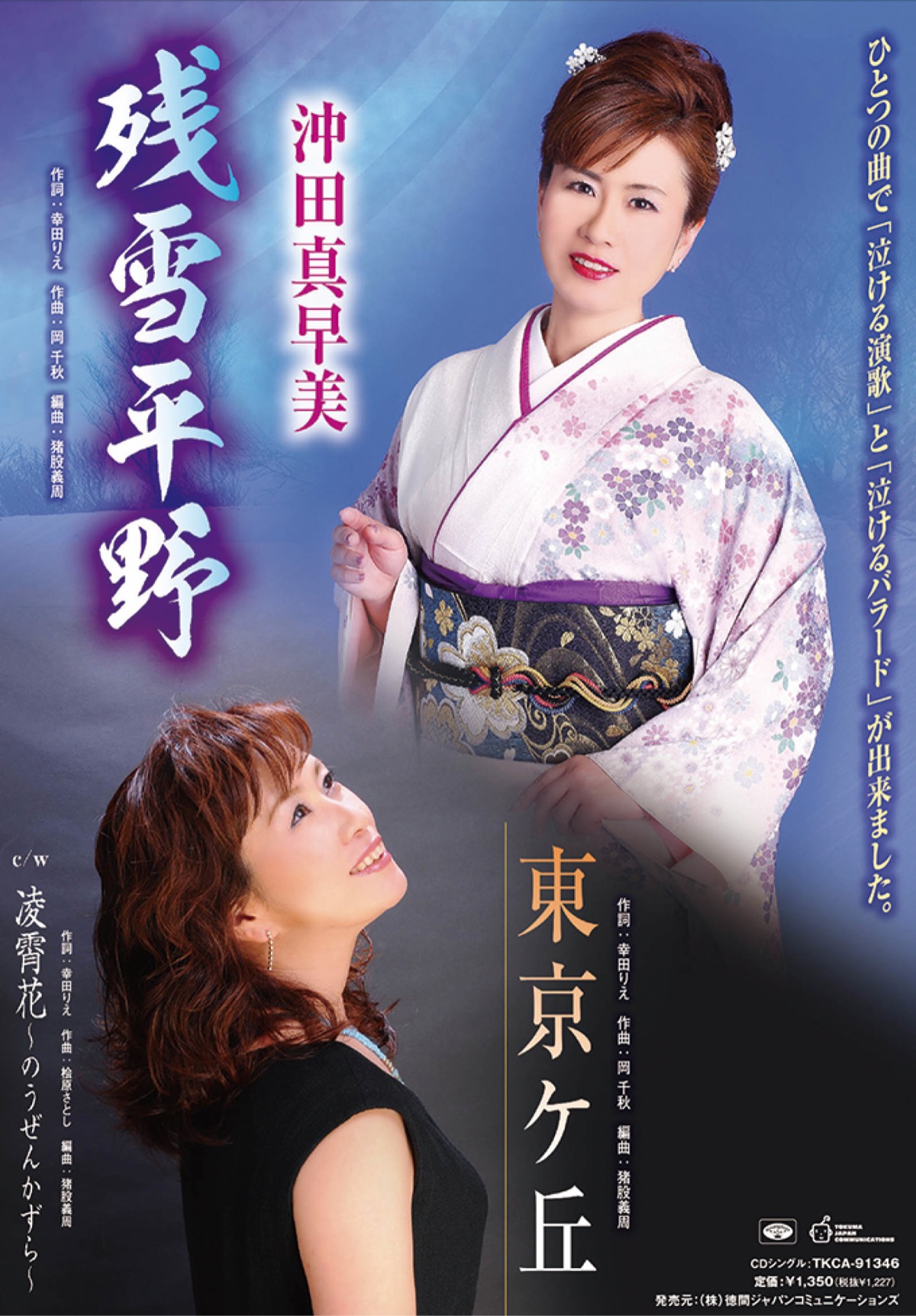 同じメロディで、編曲・歌詞が異なる珍しい形の両曲。『残雪平野』は泣ける演歌、『東京ヶ丘』は泣けるバラードに仕上がった。「ぜひ両曲を聴き比べていただければ」と沖田さん。