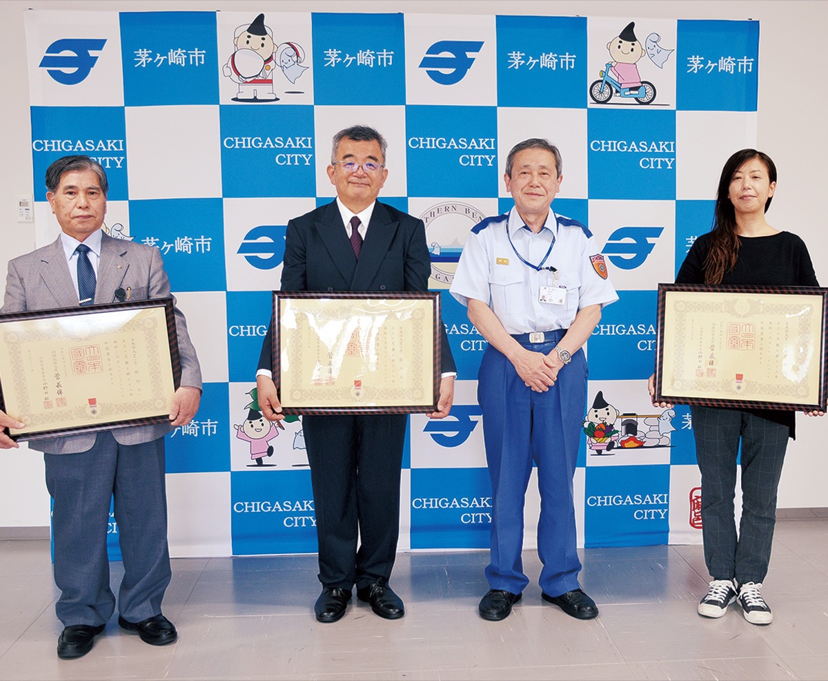 2020年4月24日にJR茅ケ崎駅のホームから線路上に転落した女性を救助した吉野修司さん(71)、佐藤光亮さん(62)、小野寺穂波さん(49)が2021年春の紅綬褒章を受章した。これに伴い5月26日、茅ヶ崎市役所本庁舎消防会議室で紅綬褒章受章を記した「褒章の記」の伝達式が行われた。