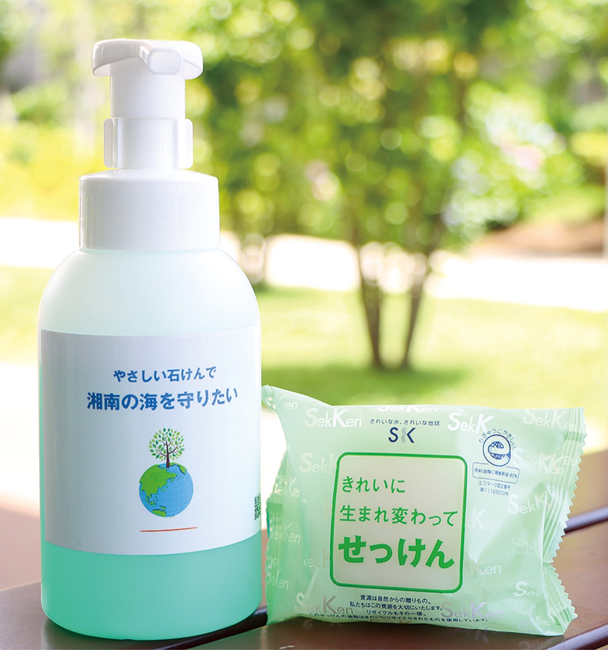 そんな環境破壊を回避し、循環型社会を目指す同社は、100年企業の「エスケー石鹸(株)」(東京都)と連携。自治体や学校、飲食店、社会福祉施設などへ導入が進んでいる。今春には、茅ヶ崎市内の小学校にも商品を寄贈。事業を通して岩崎社長は、「みんなで環境について考えていければうれしい」と語る。