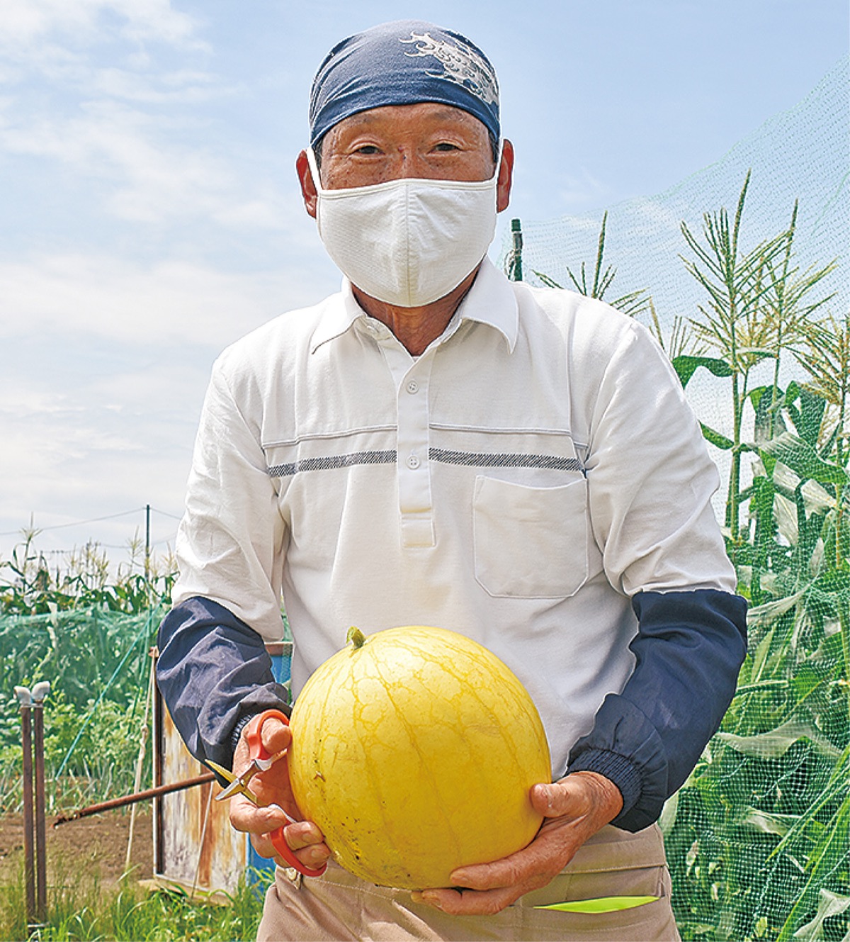 松尾在住の杉崎昇さん(62)の家庭菜園で黄色いスイカが収穫され、周囲を驚かせている。