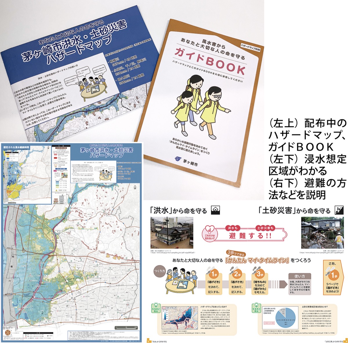 「ガイドBOOK」ではこのほか、洪水や土砂災害の危険区域でなくとも大雨や暴風に備えること、万が一の際は市から情報をとることの大切さも記載した。