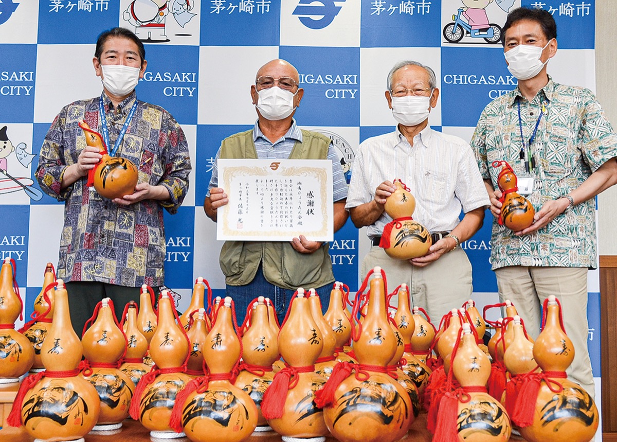 100歳を迎えた人へのひょうたんの寄贈は、ほかの市町村でも行っているのを聞いた久保会長の提案で始まった。