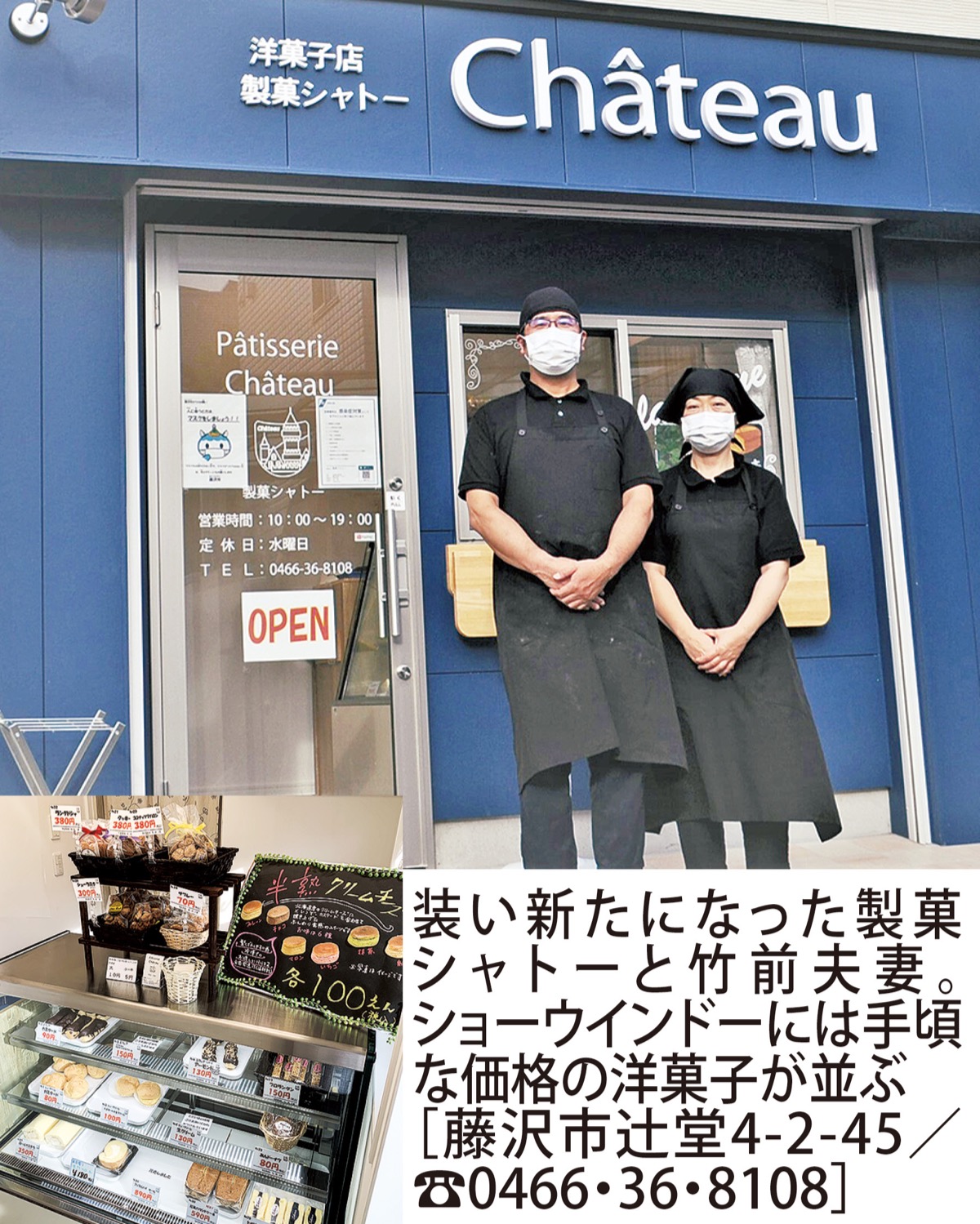 辻堂の閑静な住宅街の一角にある「製菓シャトー」がこのほどリニューアルオープンした。2代目の竹前公博さんは「父と母がやってきたことを引き継ぎつつ、新しさも取り入れて、うちに来て良かったと言っていただけるお客様を一人でも増やしていけたら」とほほ笑む。
