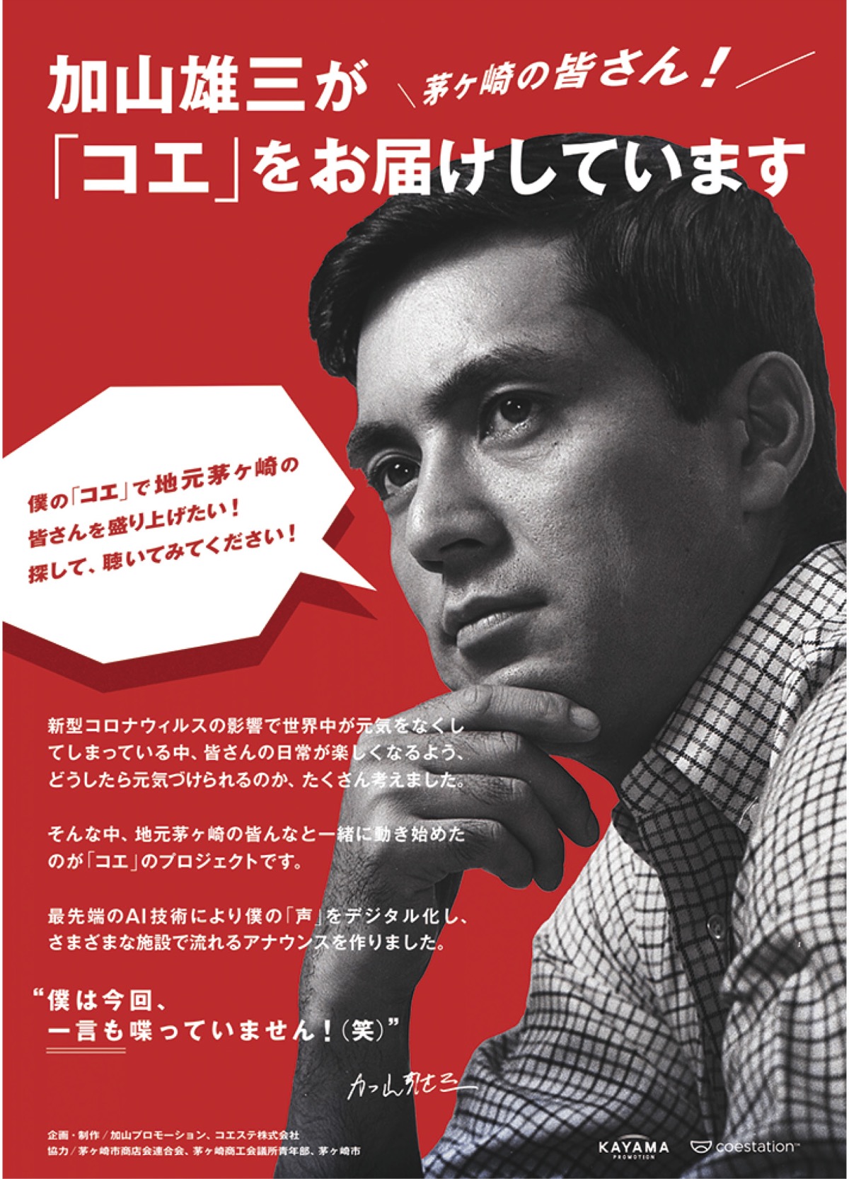 このプロジェクトは、新型コロナウイルス感染症で落ち込む市内の人たちを元気づけようと、市内公共施設や商業施設などで加山さんの合成音声をまちなかに流すという企画の第2弾。