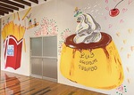 6階の飲食フロアの壁は、プリンやポテトで彩られた。