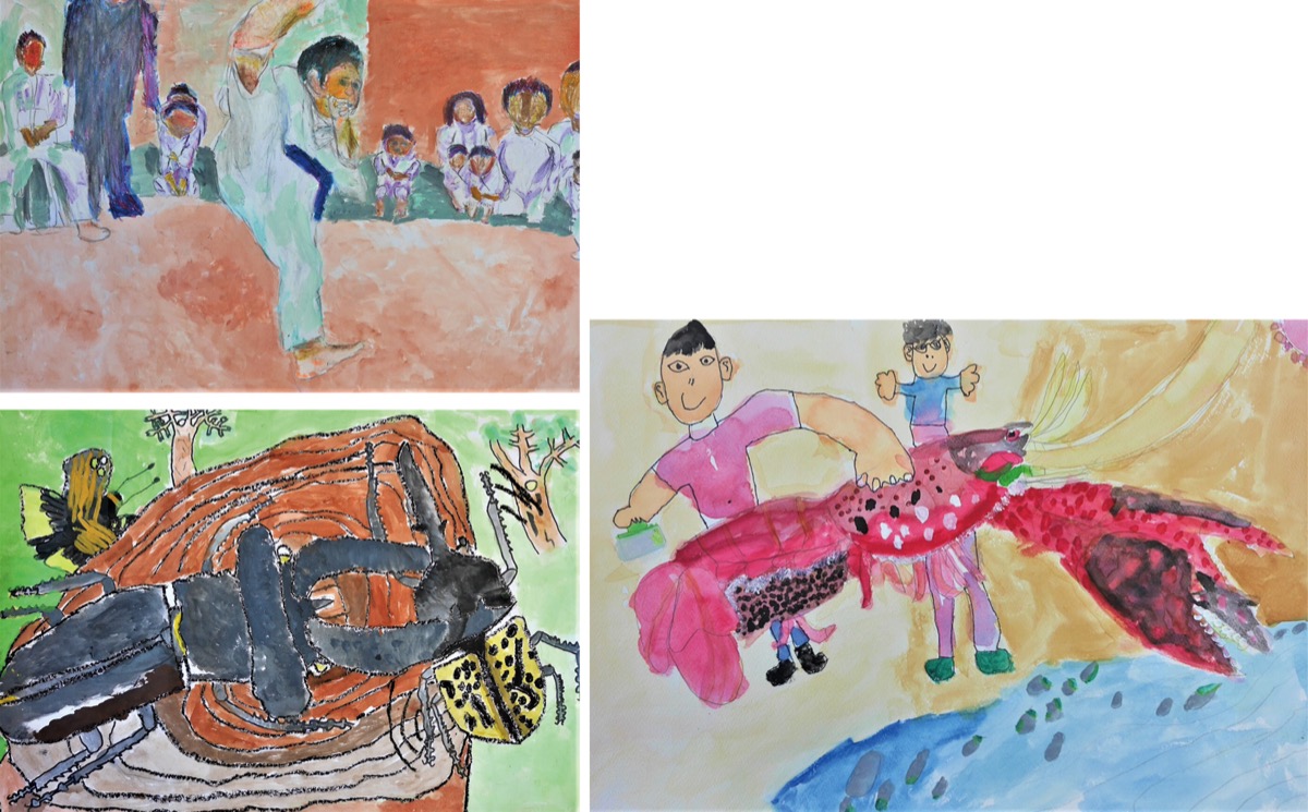 審査の結果、1位の茅ヶ崎市長賞には寒川町立一之宮小学校1年生の伊藤琉晴君の「ザリガニとぼくとパパ」が輝いた。以前、ザリガニ取りにいった時のことを思い出して描いたといい「コロナが落ち着いたらお父さんと一緒につかまえに行きたい」とコメント。作品は茅ヶ崎代表として全国展に出展される。