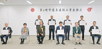 2021年度茅ヶ崎市優良建設工事表彰式が10月25日、茅ヶ崎市役所本庁舎で行われた。