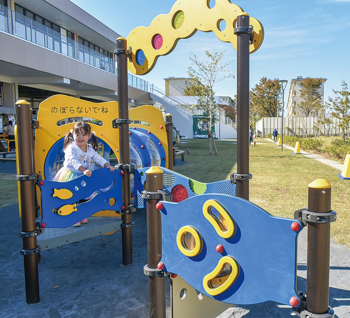 障がいの有無に関係なく子どもが遊べる「インクルーシブ遊具」が10月29日、ブランチ茅ヶ崎3の開業に合わせ、敷地内北部に設置された。