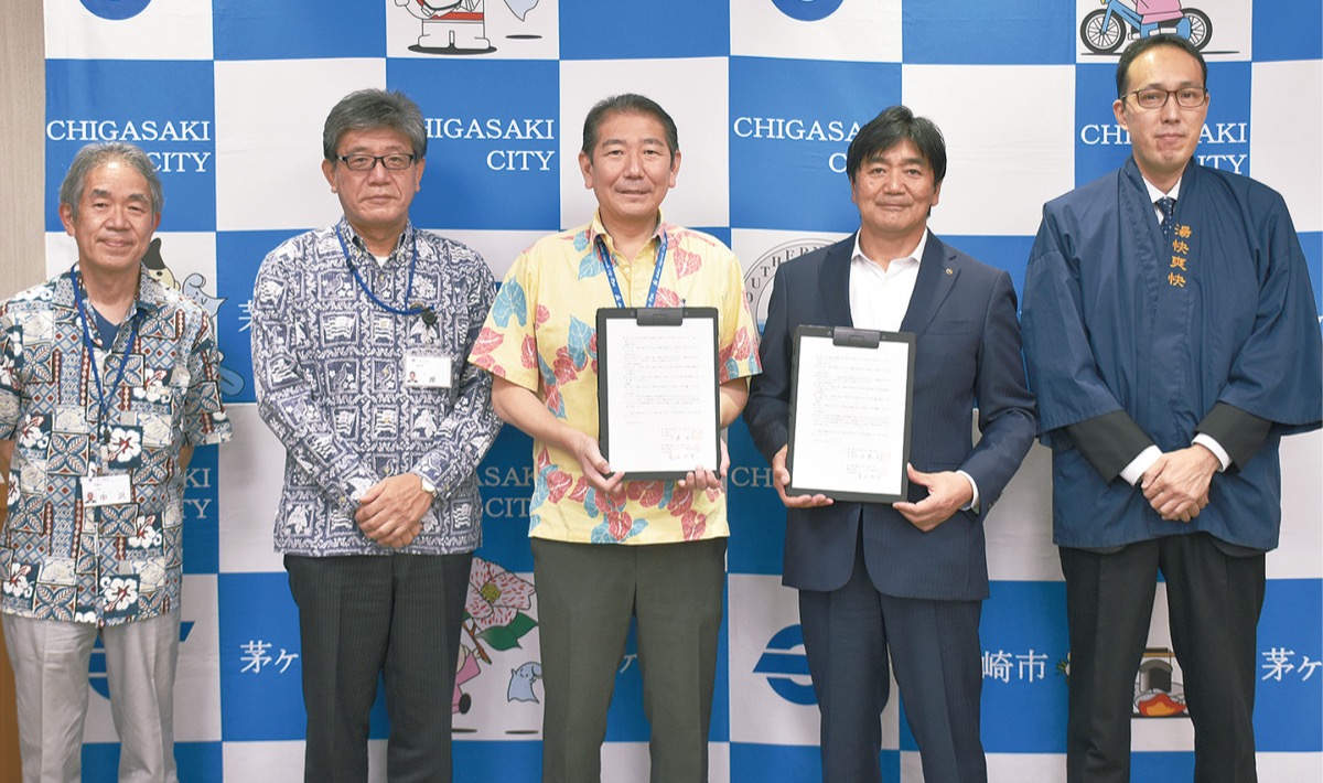 茅ヶ崎市は10月27日、公衆浴場「野天湯元 湯快爽快ちがさき」を運営する亀井工業ホールディングス株式会社(亀井信幸代表取締役)と「災害時における避難者等に対する入浴支援等に関する協定」を締結した。