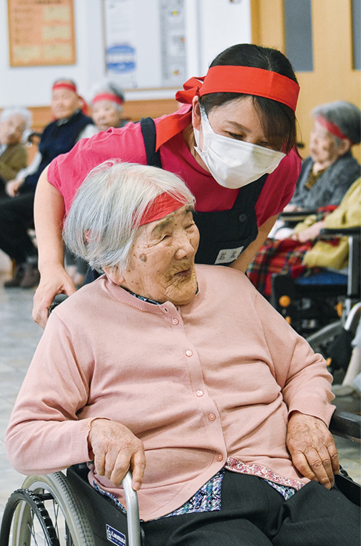 有料老人ホーム「ファミーユ湘南」の秋の運動会が、今年もにぎやかに開催された。四季を感じる風景やイベントも、ファミーユ湘南の特色だ。共用スペースは広々としていて、入居者ものびのびとくつろげる。家族との面会はコロナ禍の状況下でも感染対策を万全にして行っている。