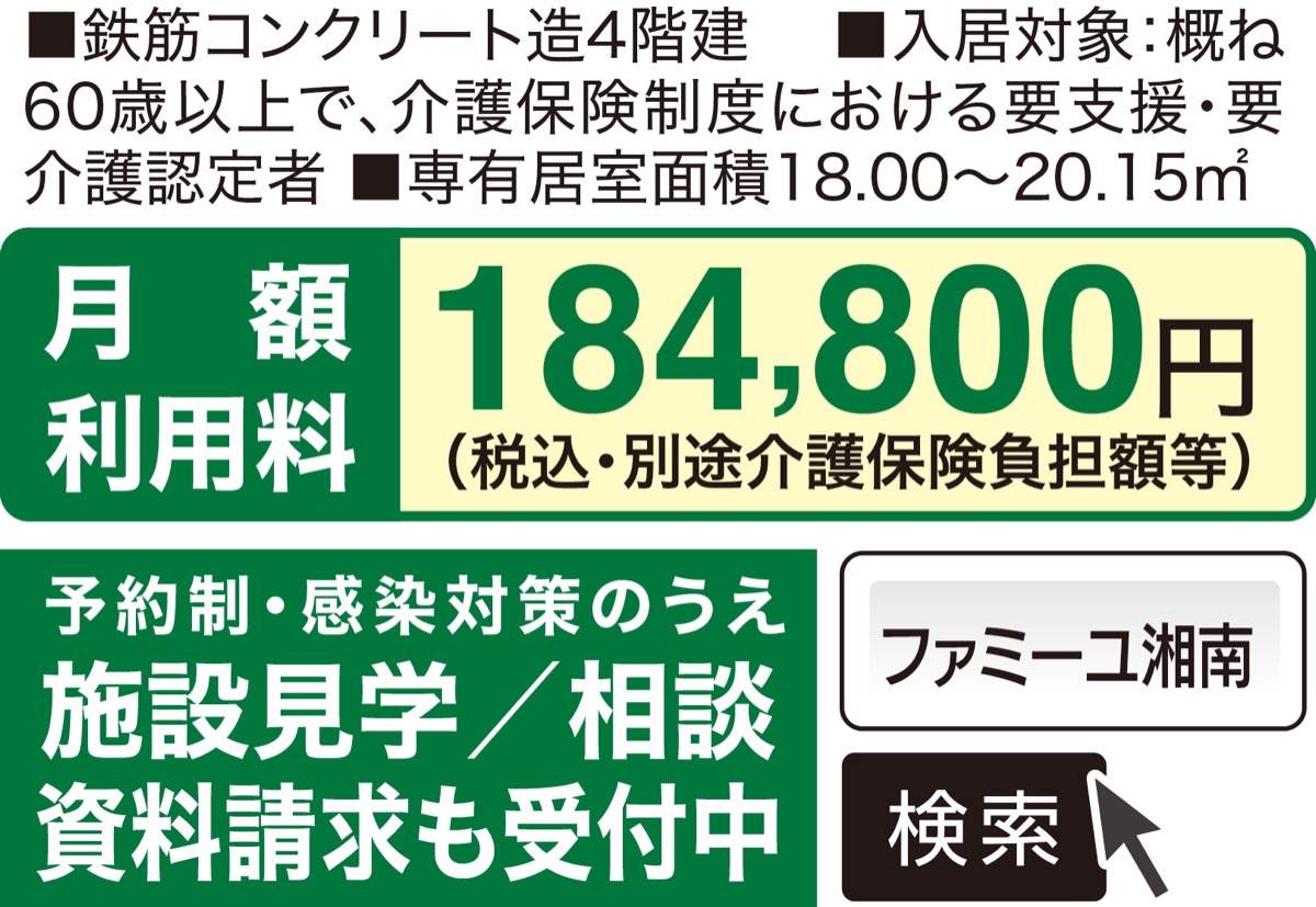 ■介護付有料老人ホームファミーユ湘南【電話】0467・74・8665/寒川町大曲1の6の20(香川駅から徒歩10分)