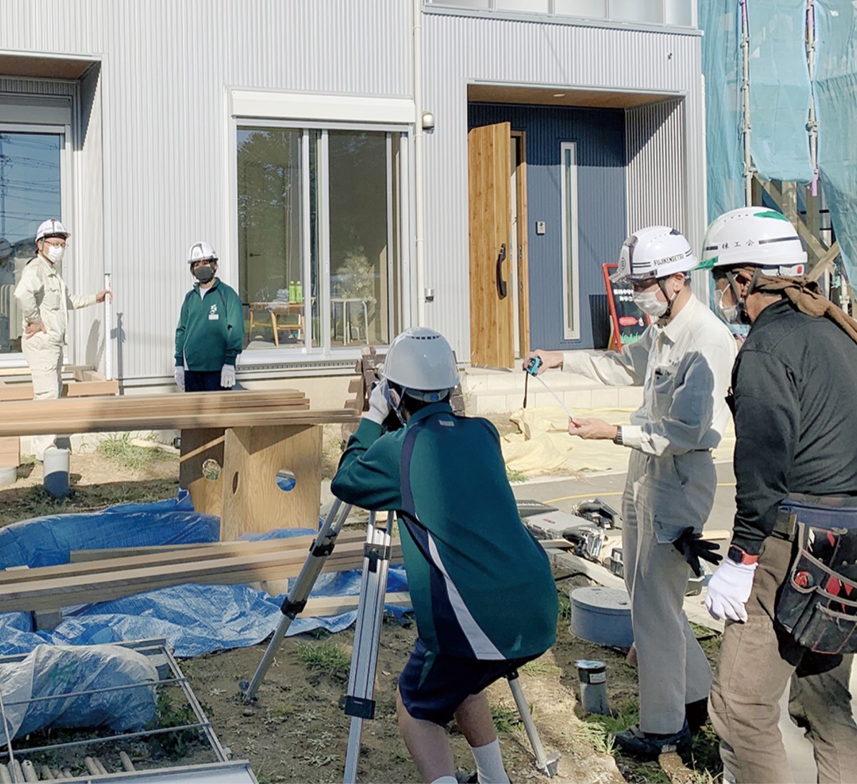 体験記念として、同社から一人一人にスケールと指矩がプレゼントされ、生徒らはそれを持って家中を採寸。「建築の基本寸法を教えてもらったので、測るのがおもしろかった。自宅も測ってみたい」と生徒ら。同社担当者は「家作りに興味を持ってもらえてうれしい。機会があればまた協力したい」と話した。