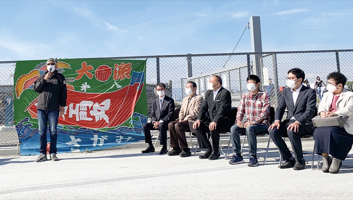 あいさつに立った木村組合長は、「漁港に賑わいが戻ってうれしい。時間が許す限り楽しんでいって欲しい」と笑顔を見せた。