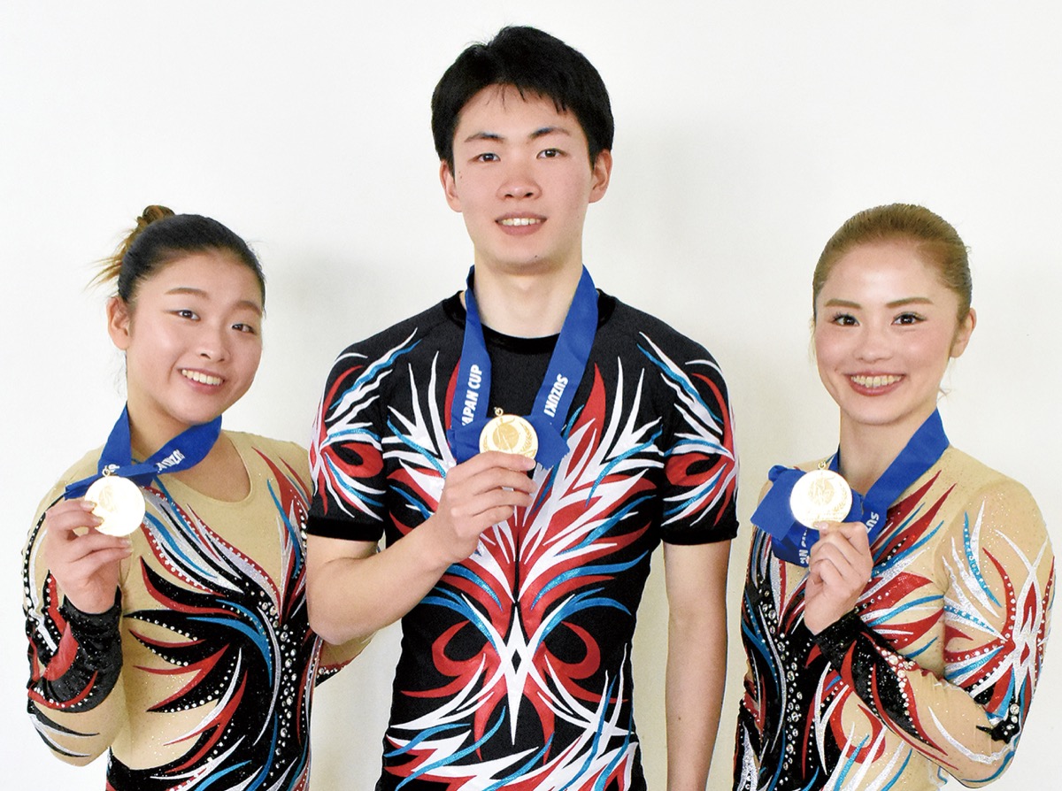 大会の1週間前、出場予定だった選手が怪我で欠場することになり、急きょ一歩さんが出場した。「驚いたが、出られない人の分も頑張ろうと思った」と振り返る。菜子さんは「男子が入ったことで力強さが出た。3人だからこその良さがあった」と話す。1週間で3人での絡みがある部分を重点的に練習し、2位の岡山のクラブと0・306点差の19・750点で優勝した。