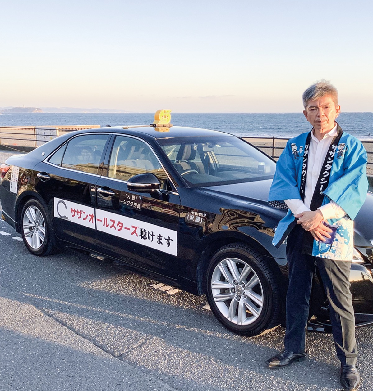 予定の時間に現れたのは青い法被を着た長田さん。「お待ちしていましたー」と大きな声と高いテンションが印象的だ。もともと岡山県出身だが、家庭の都合で湘南に移住。タクシードライバーになって24年というベテランだ。