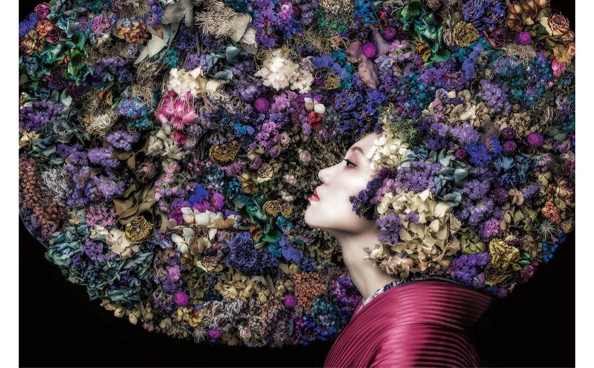 作品はプアマナのスタジオ内で撮影、背景の生花装飾、美容着付けや衣装は大類代表が担当した。着想から1年以上かけて撮影したという松岡さんは「ヘアメイク、着付け、レタッチ等に関わったすべての人の賜。ただ感謝しかない」と述べた。大類代表は「植物の力を借りて自分の想いをどこまで表現できるか、どの仕事も語るのは植物であり、常にその声に敏感でありたいと思いながら制作した」と語った。