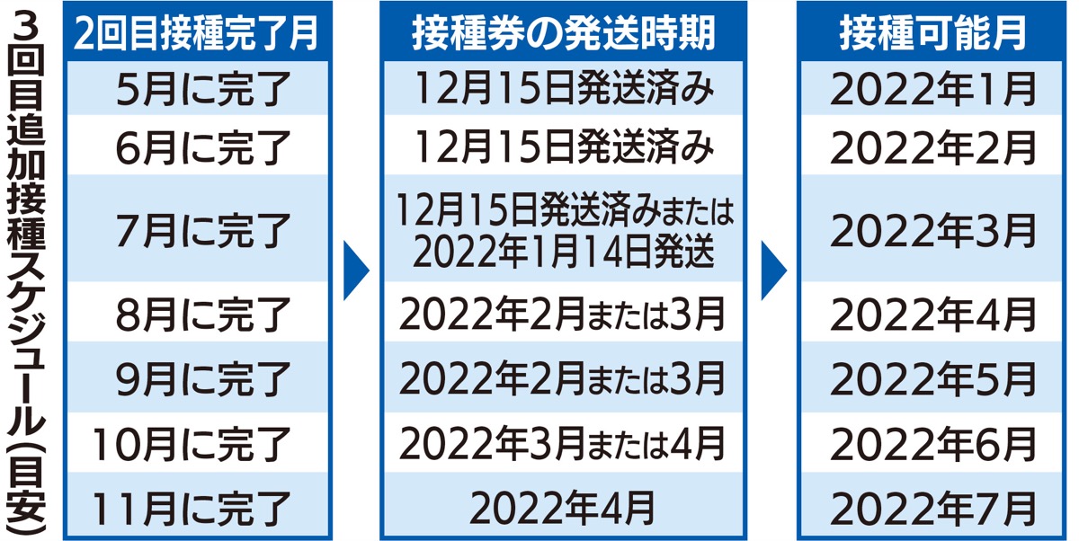 昨年5月から7月20日までの完了者約5万人に対しては、12月15日に発送済み。7月21日から8月24日までの完了者約4万人には、きょう1月14日に発送される。市ワクチン担当は「12月発送の対象者で、届いていない場合はワクチンコールセンター【フリーダイヤル】0120・159・267へ連絡を」と呼び掛けている。