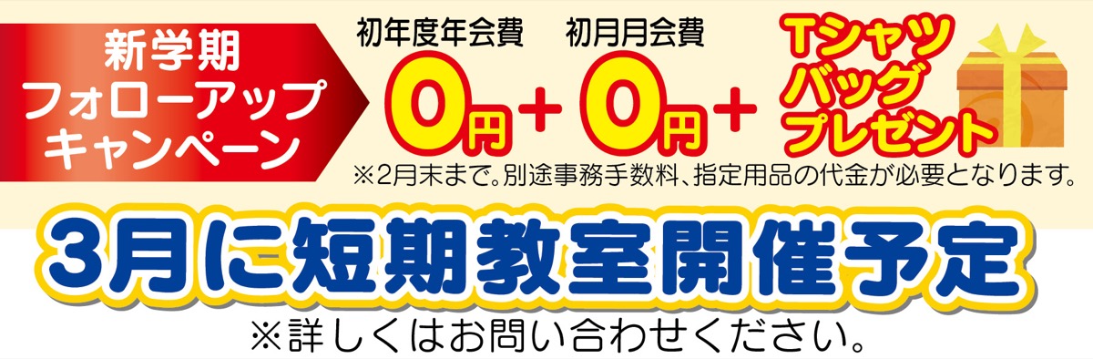 現在、入会キャンペーンを実施しているほか、3月には続けて体験できる短期教室も予定。詳しくは問合せを。