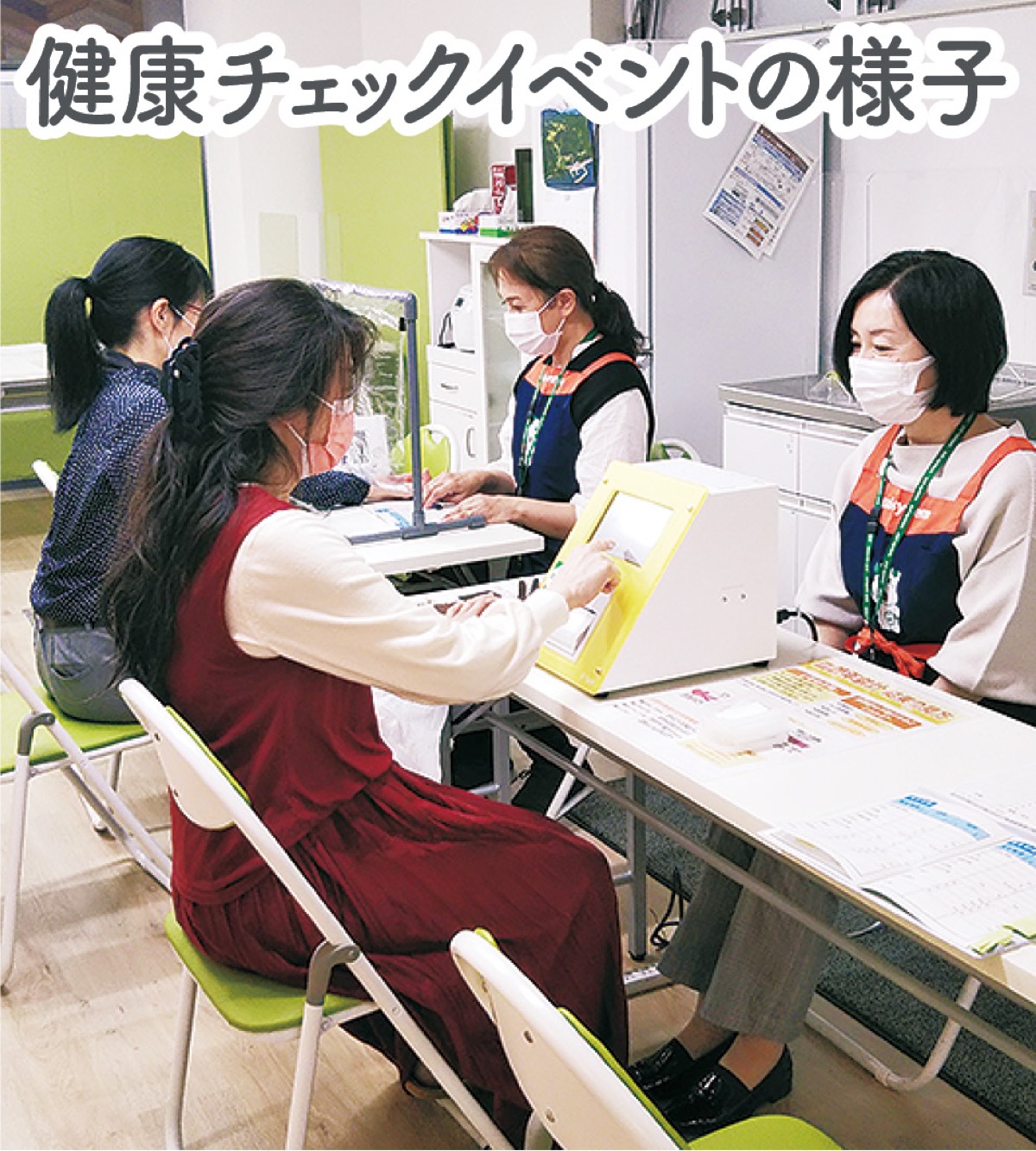現在、新型コロナ感染拡大のため休止しているが、無農薬野菜やハーブティ、アロマオイルなどが並ぶ「ふらっとマーケット」と、血管年齢や筋肉量などが手軽に計測できる健康チェックイベントを月1回、入場無料で開催している。イベントが再開した際など、気軽に参加してみては。