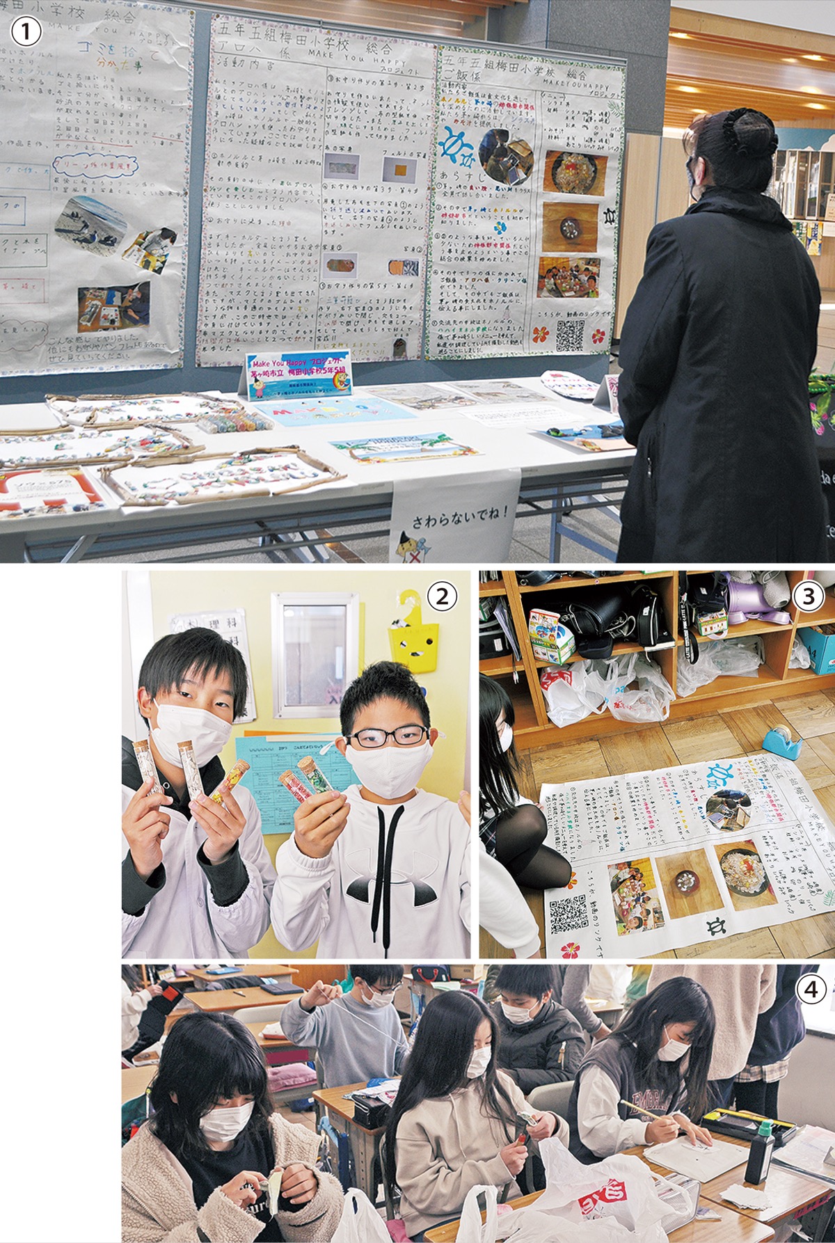 これまでの学習の成果をまとめたパネルや作品は3月14日(月)まで展示中(お守りは無料で配布しており、なくなり次第終了)。同クラスの野仲爽太君は「展示を見てもっと多くの人に茅ヶ崎とホノルルの関係を知ってほしい」と話している。