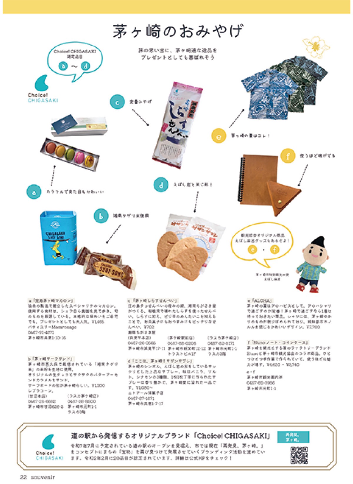 市職員がメンバーや事務所と一緒に、企画から撮影まで行ったという。市は「観光冊子とアーティストとのコラボ企画は珍しい試み。ローカルグルメやお土産、文化スポットなどの情報も盛り込まれており、見て楽しい!読んで楽しい!茅ヶ崎の魅力が詰まった一冊になっています」としている。