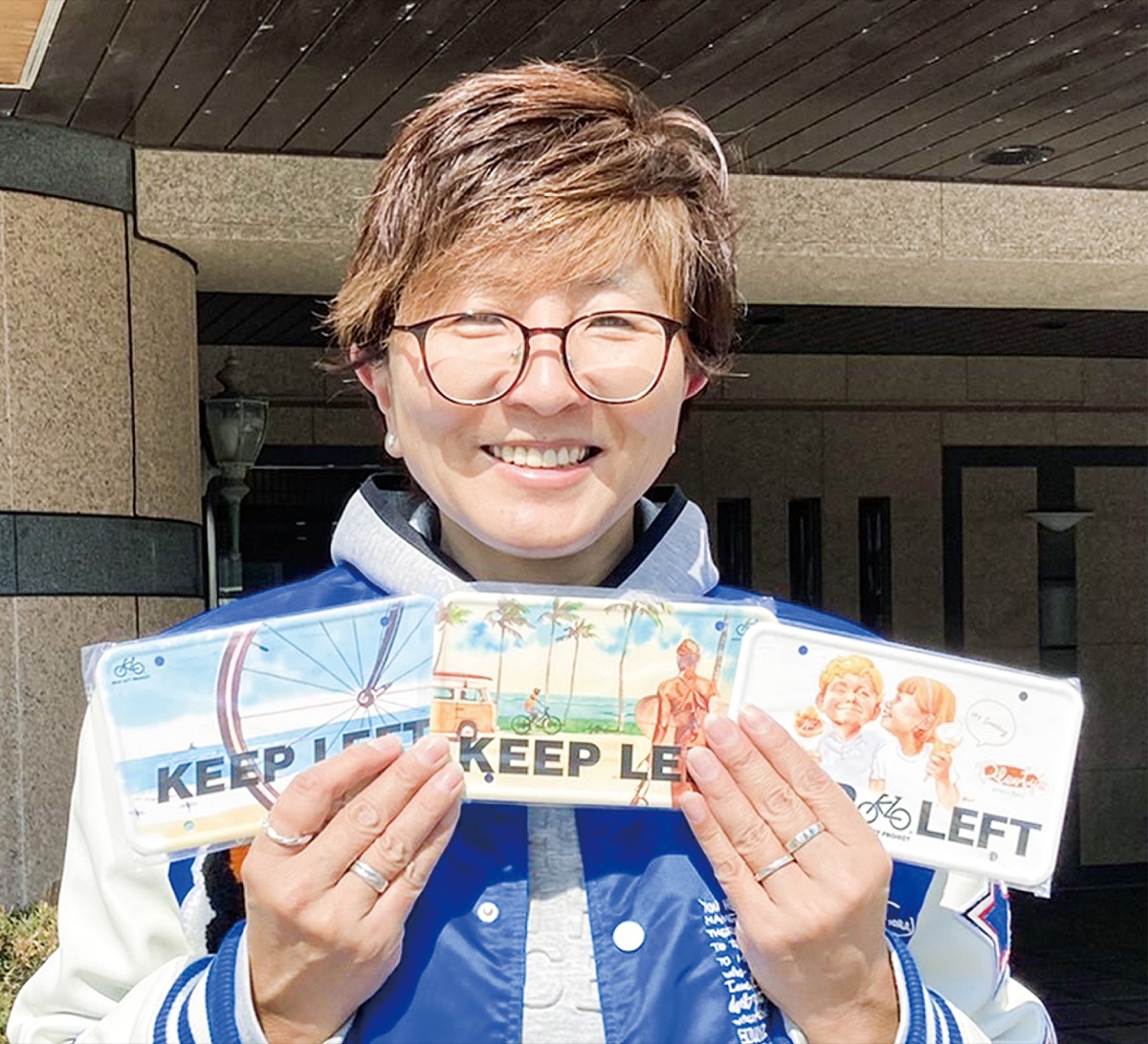 自転車に「KEEP LEFT」のプレートを取り付け、左側通行を心掛けつつ交通安全につなげる「キープレフトプロジェクト」。このほど、茅ヶ崎在住の水彩画家・かとうくみさんがデザインを手掛けたプレート3種類が新たに誕生した。