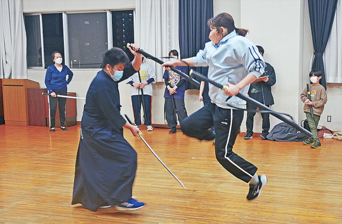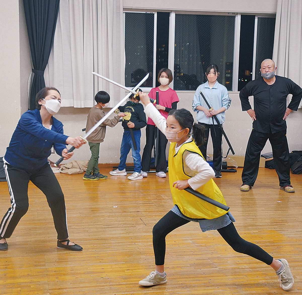 練習は茅ヶ崎勤労市民会館など駅周辺の施設で週2回ほど実施。殺陣や演技に分け、本格的な練習に取り組んでいる。柴崎さんの指導で実施された殺陣の練習では刀の振り方や体のさばき方、動きなど、細かな指導がわかりやすく丁寧に行われていた。