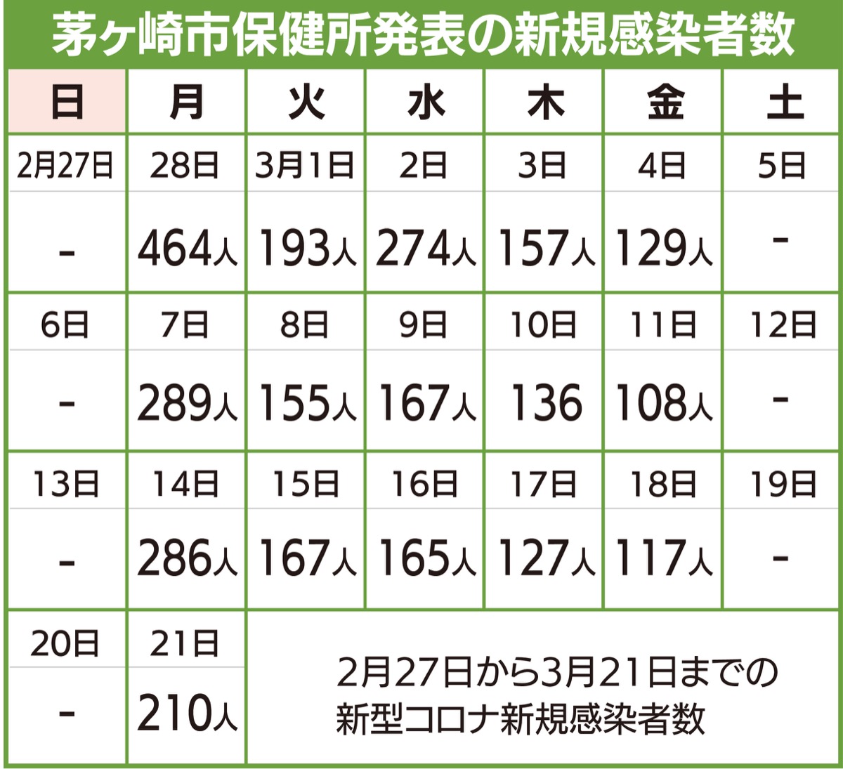 茅ヶ崎市保健所(茅ヶ崎市、寒川町)管内で3月15日から21日までの1週間で、前週から66人減となる786人の新型コロナウイルス感染者が確認された。1日あたりの平均感染者数は、前週から約8%減となる約112人となった。