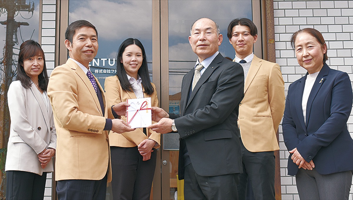 不動産仲介等を行う株式会社フドケン(香川、山本栄一社長)は3月4日、社会福祉法人ひざしの丘(佐藤和親理事長)に10万円を寄付した。