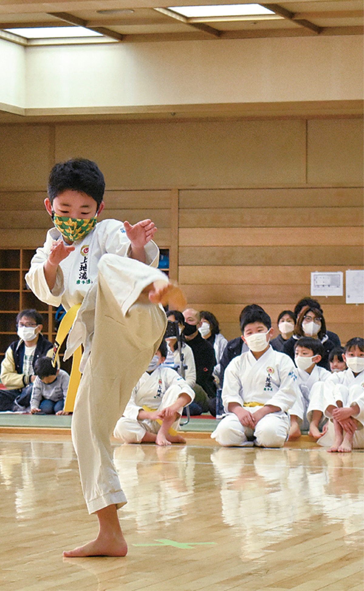 茅ヶ崎や藤沢、鎌倉など湘南地区の同館道場から中学3年生以下の少年部には48人、高校生以上の一般部では19人が参加。レベルごとに分かれ感染症予防のため対戦のない型のみで争った。