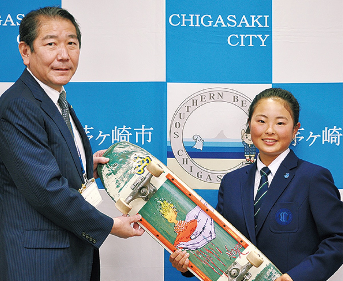 4月21日には茅ヶ崎市役所を訪れ、佐藤光市長に結果を報告。今後の目標として「海外の大会でも活躍し、周りにいい影響を与えたり、魅力を伝えられる選手になりたい」と語り、佐藤市長は「10代の若者が次の世代や競技全体のことも考えて頑張っていることは、本当に頭が下がる。市としても応援したい」とエールを送った。