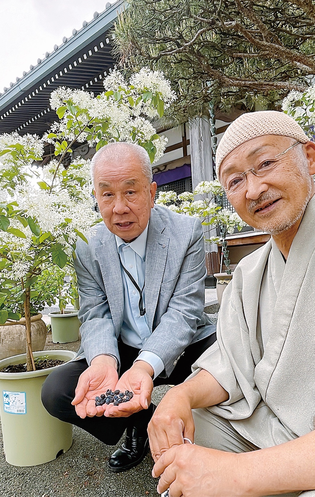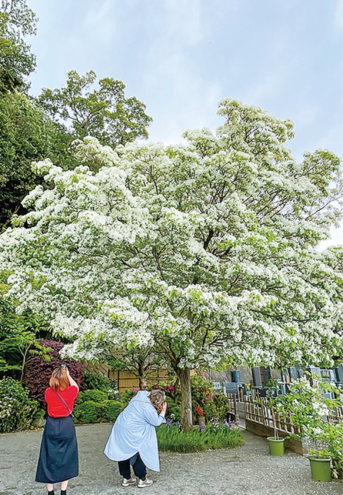 モクセイ科の絶滅危惧種。同院にある木は2003年、元東京大学総長・茅誠司さんの邸宅から、四季折々・多種多様な花木が育ち「花のお寺」として知られる同院と、植物育成名人で「緑の手」として評判の鳴海善通住職に託されたもの。