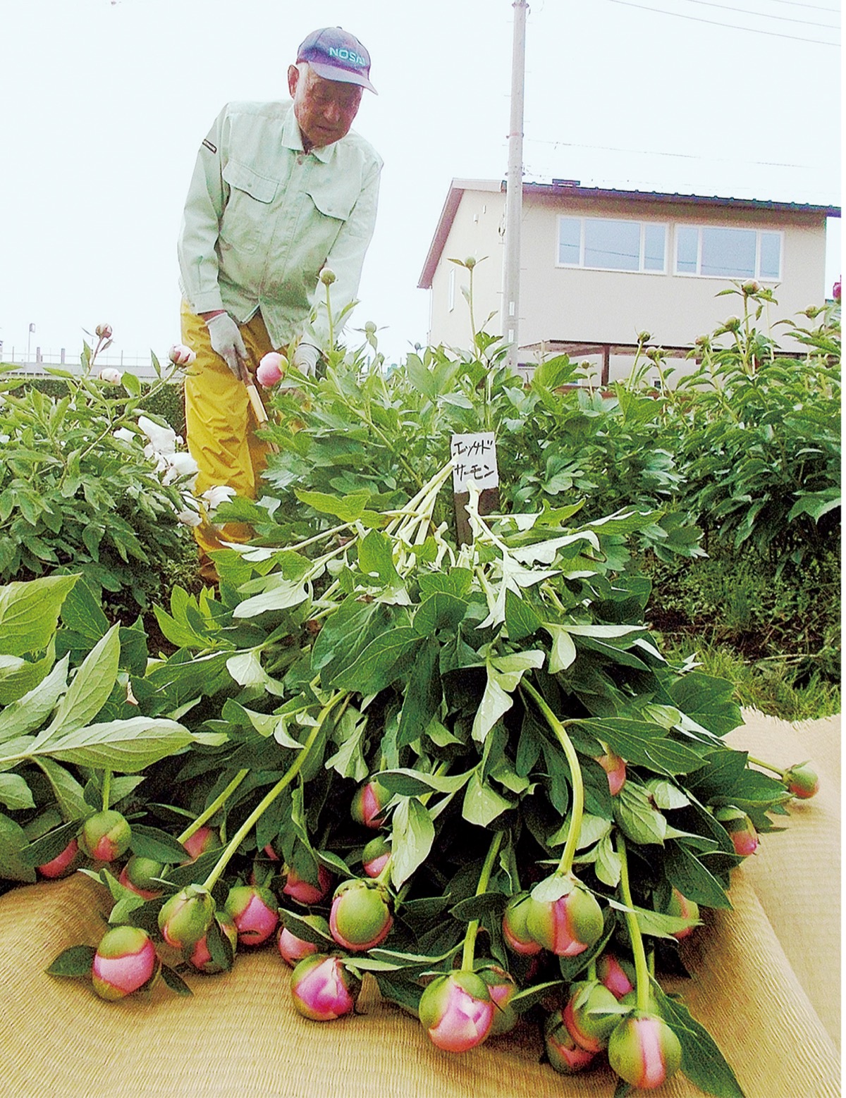 園主・大谷光昭さん(81)の畑では、約30種類のシャクヤクを栽培。スタッフらとともに朝5時から収穫を始め、その日のうちに市場への出荷や全国発送されていく。