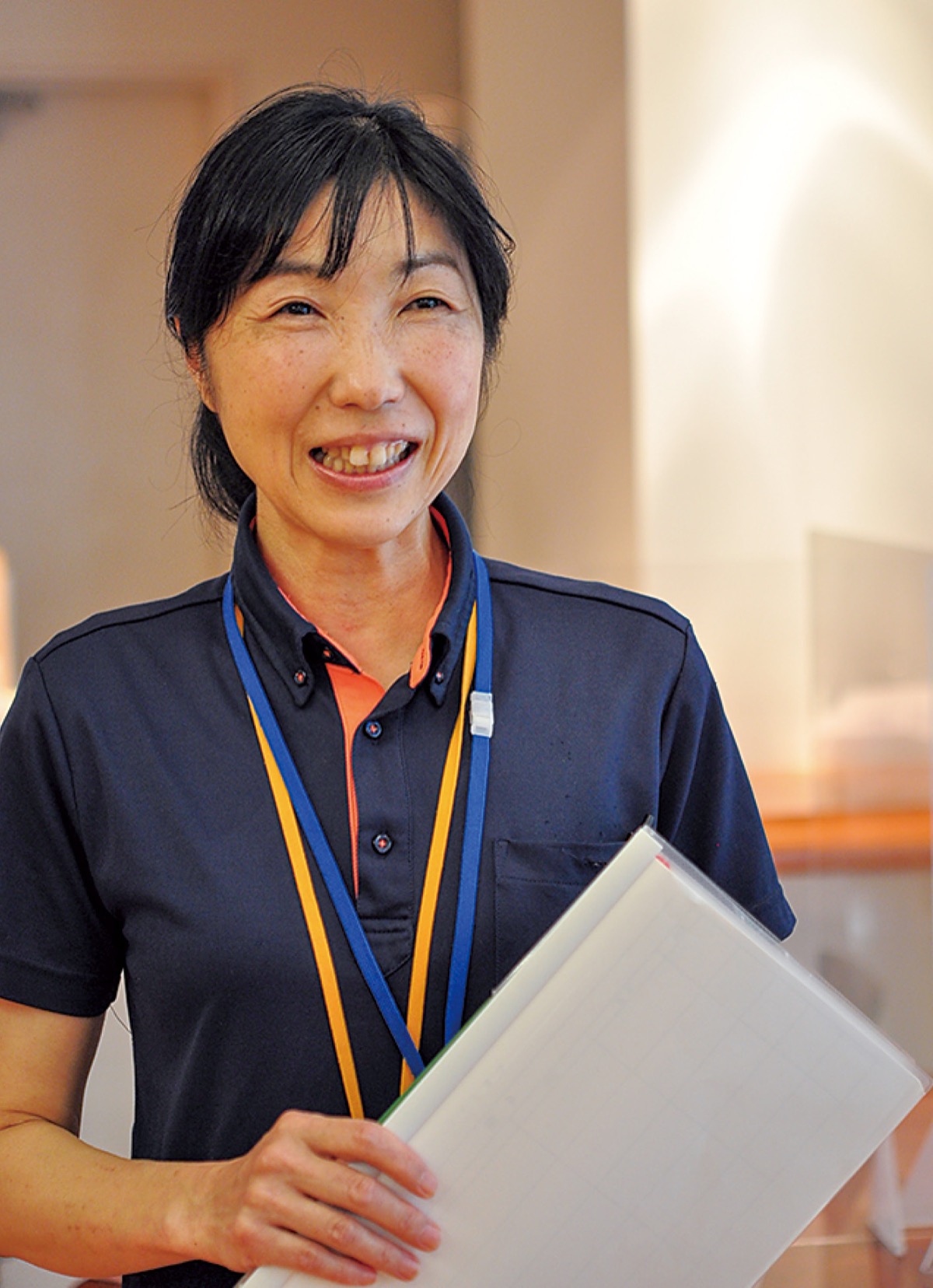 「看護師として日々、入居者様の心と身体に寄り添いながら、健康を見守らせていただいています。生活の場を整えて、その方が本来もつ自然治癒力を発揮できるお手伝いができれば」。井手看護師の晴れやかな笑顔と、きびきびとした応対は、入居者の安心感につながっている。