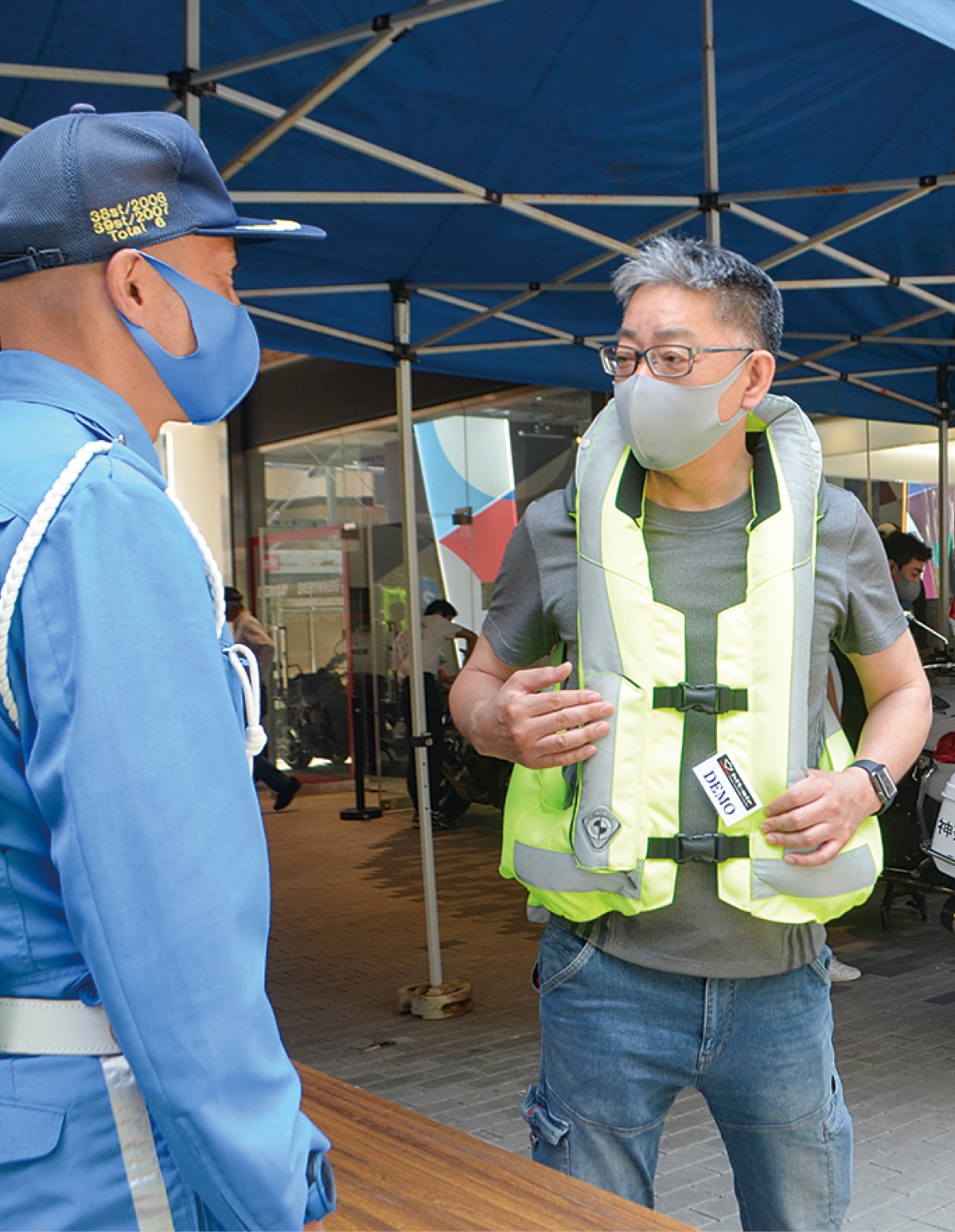 当日は、二輪車の死角体験やエアバッグジャケットの着用体験、啓発品の配布などを実施。参加者からは「エアバッグはきちんと体の大切なところが守られている。購入を検討したい」などの感想が聞かれた。