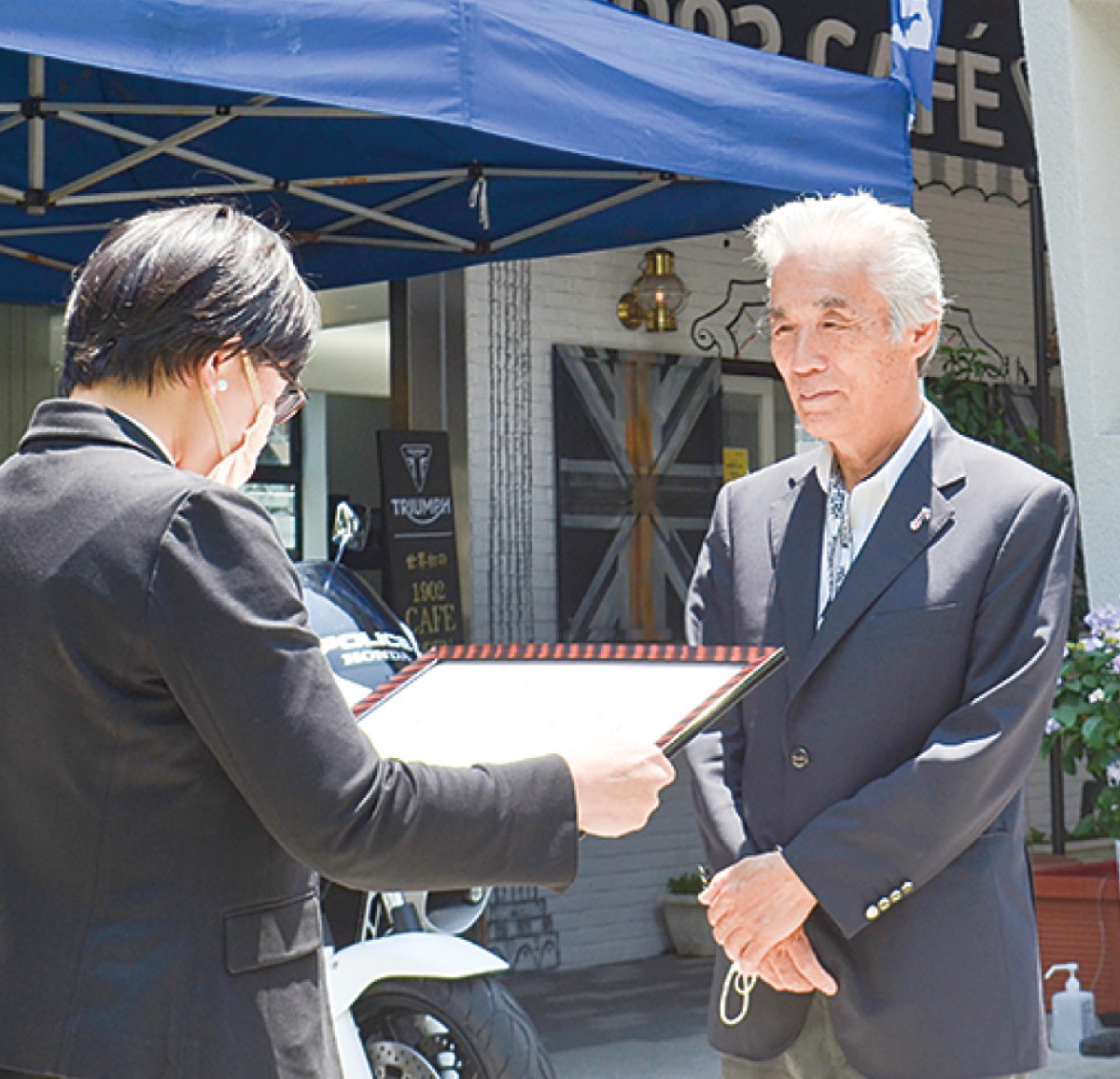 また、反射材などの啓発品を寄付した同店の梅田勉代表取締役社長へ、県警から感謝状が贈呈された。梅田社長は「私たちの天敵は交通事故。一件でも減らせるよう、警察と連携を図っていきたい」と話した。