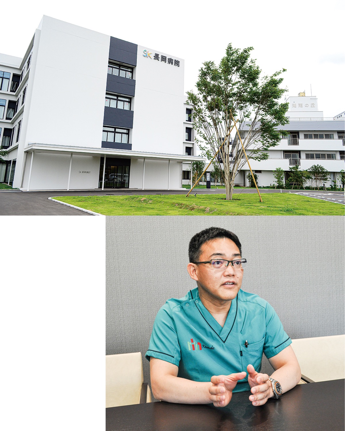 もともと同法人が運営する介護老人保健施設があった敷地を拡張し移転したもので、病床数は218床(うち56床は介護医療院病棟)。同時に開設された介護医療院「湘南の丘」(56床)との連携を強化し、病院との一体利用を進めるという。